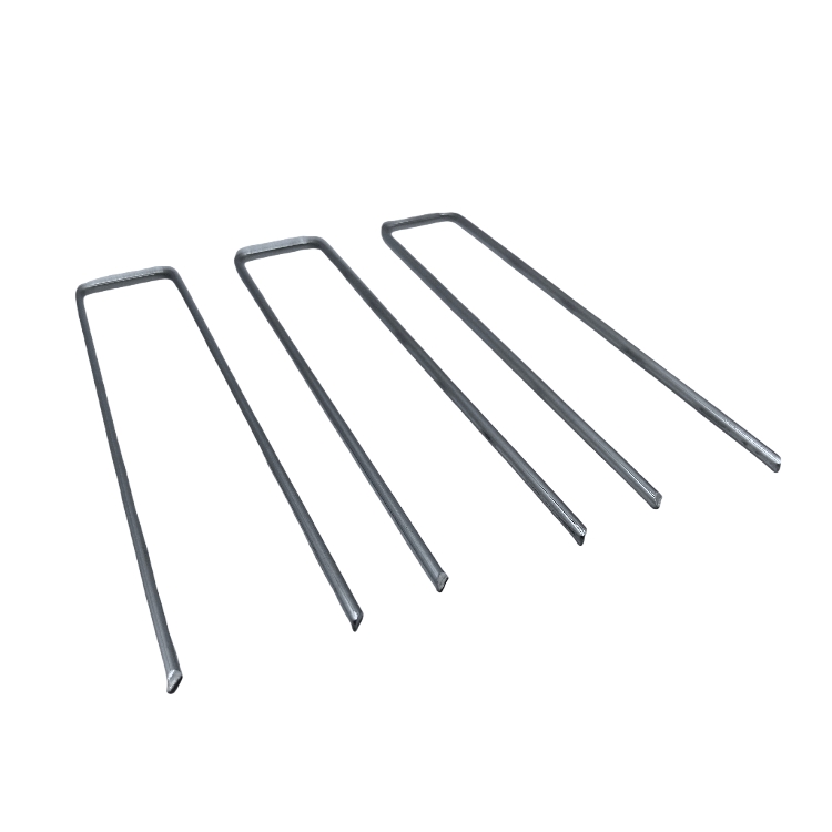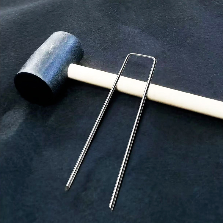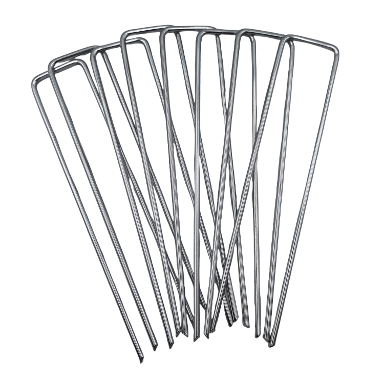 1. Material: These U-shaped ground nails are made of thick galvanized steel, sturdy and rust-resistant, with high strength and long service life for outdoor use.