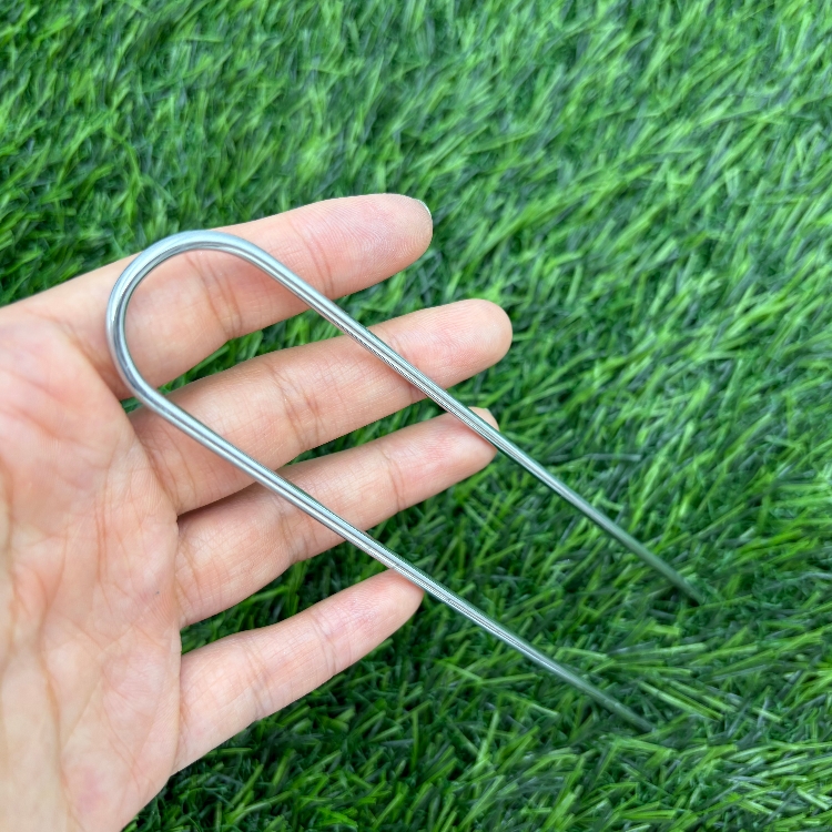 1. Material: These U-shaped ground nails are made of thick galvanized steel, sturdy and rust-resistant, with high strength and long service life for outdoor use.