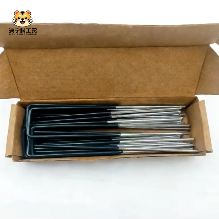 1. Material: These U-shaped ground nails are made of thick galvanized steel, sturdy and rust-resistant, with high strength and long service life for outdoor use.